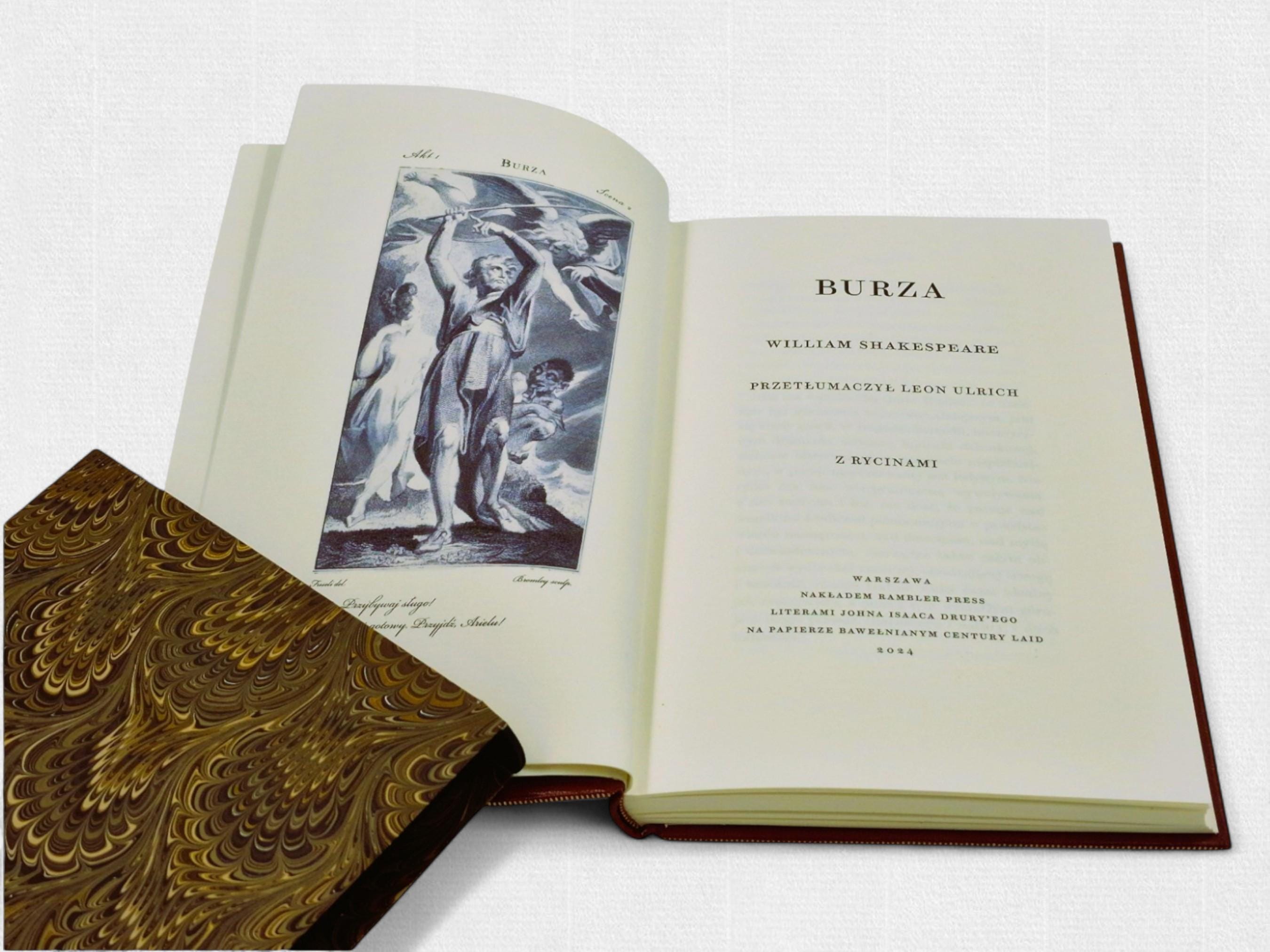 Pierwsze wydanie ukazało się w 1623 roku w słynnym Pierwszym Folio, które ocaliło wiele dramatów Szekspira. W Polsce Burza pojawiła się po raz pierwszy w przekładzie Józefa Paszkowskiego (1847), a następnie w wersji Leona Ulricha (1875), której poświęcone jest niniejsze wydanie. Tłumaczenie Ulricha zachowuje rytm i poetycki ton oryginału, jednocześnie nadając tekstowi klarowność języka.