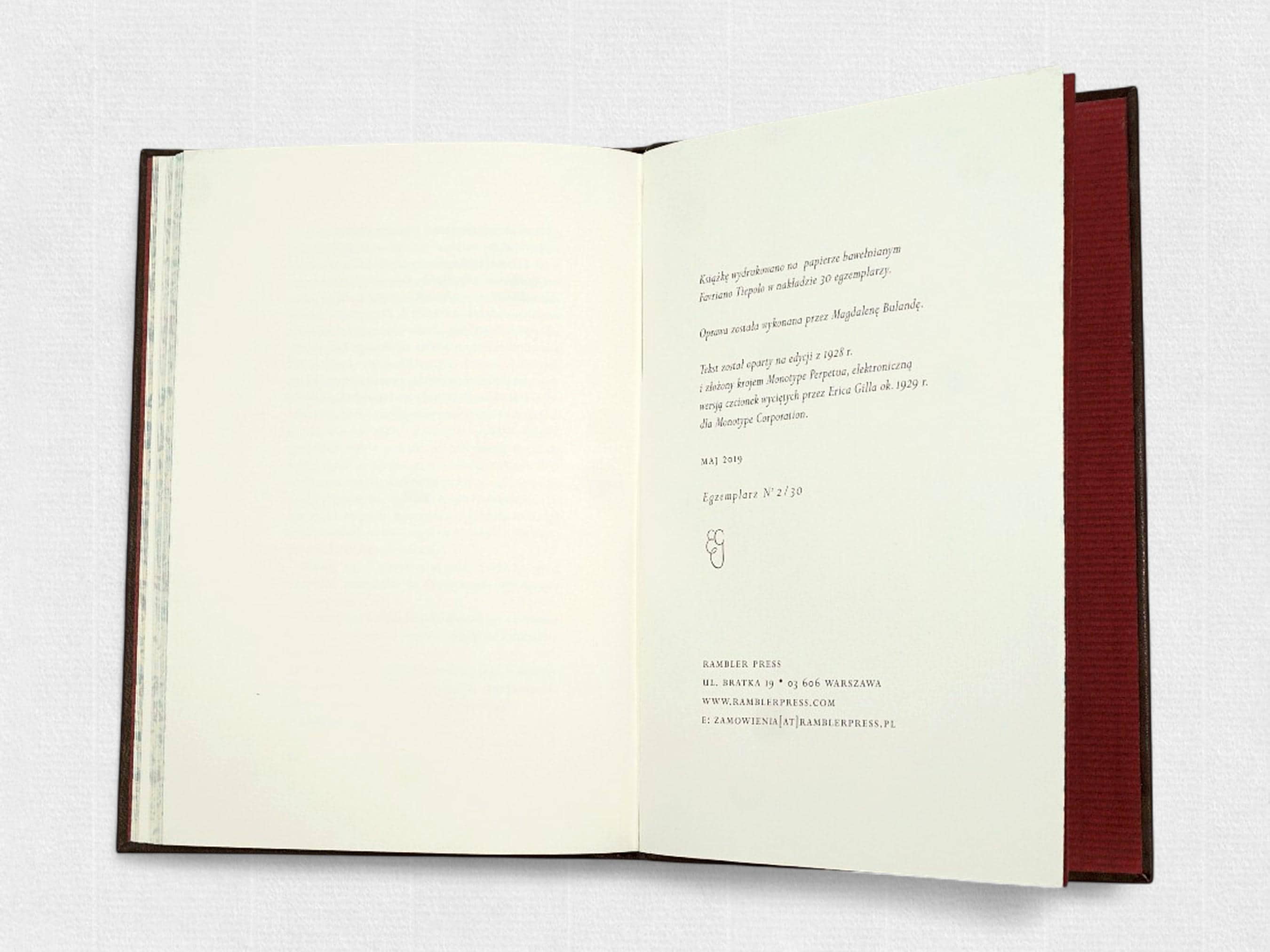 Działamy od 2013 r., specjalizując się w bibliofilskich edycjach klasyki literatury. Nasze książki powstają zazwyczaj w nakładzie 25 numerowanych egzemplarzy, drukowane są na papierze bawełnianym i wyposażane w oprawę wykonywaną ręcznie.